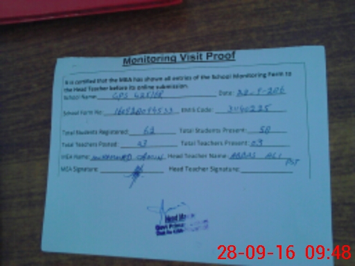 | Attendance Register | Head Teacher | MEA with School | Visit Proof |