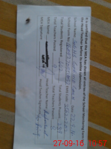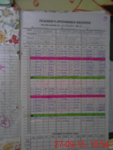 | Remarks (Use Separate Page if Required): Teacher Rahat Raheel sst not present at school but her attendance was entered in attendance register later on some one changed her attendance in to leave with out any approval leave application But at 0913 mentioned teacher arrived by herself So as per sop she marked as absent Head teacher refused to sign the visit proof | |||||