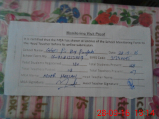 | Certified that this School was Inspected by the Undersigned MEA/DMO Today and the Information Stated Above is as Per Record. | |||||