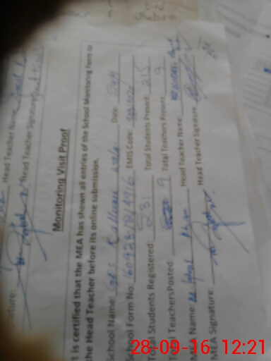 | Attendance Register | Head Teacher | MEA with School | Visit Proof |