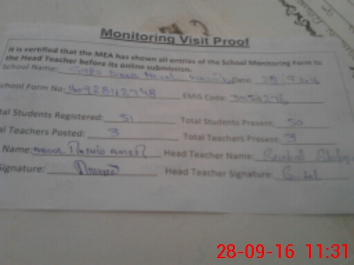 | Attendance Register | Head Teacher | MEA with School | Visit Proof |