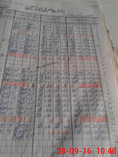 | CNIC | Full Name | Designation | R/C | Absence During Last Calender Month |