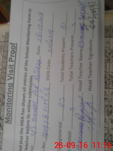 | Attendance Register | Head Teacher | MEA with School | Visit Proof |
