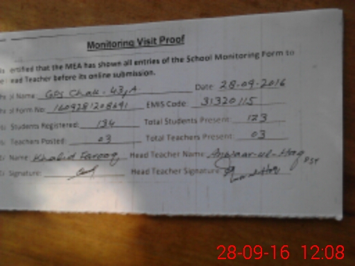 | Attendance Register | Head Teacher | MEA with School | Visit Proof |