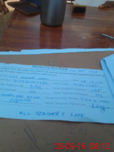 | Remarks (Use Separate Page if Required): All teachers reach school after 0745am but sign 0730am all teachers late no recarde of NSB fund 26 June 2016 | |||||