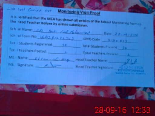 | Certified that this School was Inspected by the Undersigned MEA/DMO Today and the Information Stated Above is as Per Record. | |||||