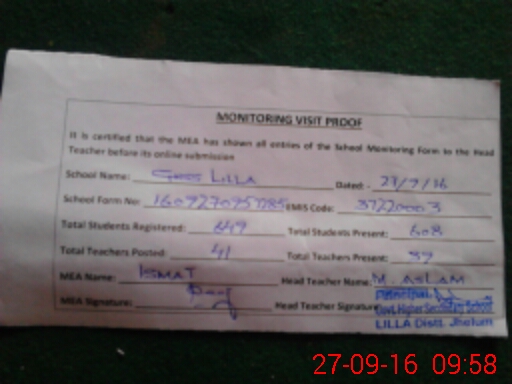 | Certified that this School was Inspected by the Undersigned MEA/DMO Today and the Information Stated Above is as Per Record. | |||||