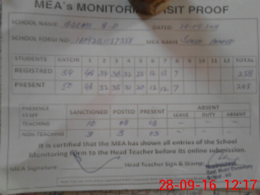 | Certified that this School was Inspected by the Undersigned MEA/DMO Today and the Information Stated Above is as Per Record. | |||||