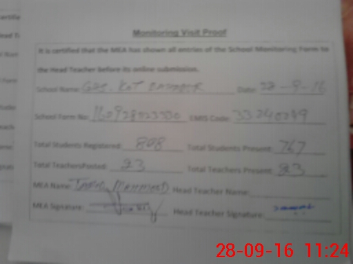 | EMIS Code: 33240049 | Name of School: GHS KOT BAHADAR SHAH | |||