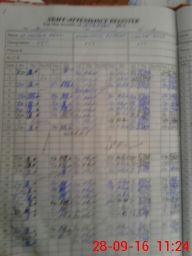 | CNIC | Full Name | Designation | R/C | Absence During Last Calender Month |