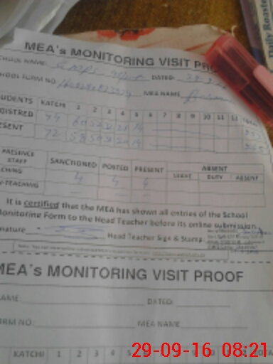 | Attendance Register | Head Teacher | MEA with School | Visit Proof |