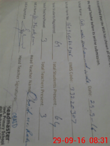 | Attendance Register | Head Teacher | MEA with School | Visit Proof |