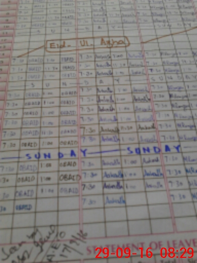 | CNIC | Full Name | Designation | R/C | Absence During Last Calender Month |