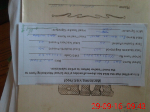 | Attendance Register | Head Teacher | MEA with School | Visit Proof |