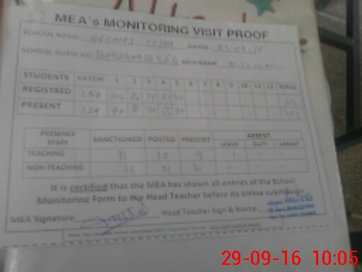 | Attendance Register | Head Teacher | MEA with School | Visit Proof |