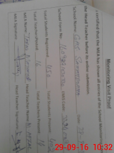 | Certified that this School was Inspected by the Undersigned MEA/DMO Today and the Information Stated Above is as Per Record. | |||||