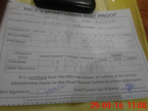 | Attendance Register | Head Teacher | MEA with School | Visit Proof |