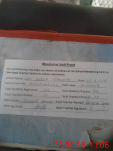 | EMIS Code: 34130012 | Name of School: GHS AKBAR GHANOKE | |||
