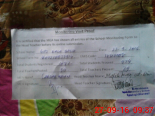 | Attendance Register | Head Teacher | MEA with School | Visit Proof |
