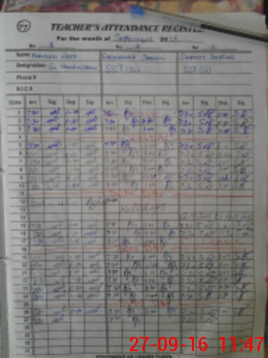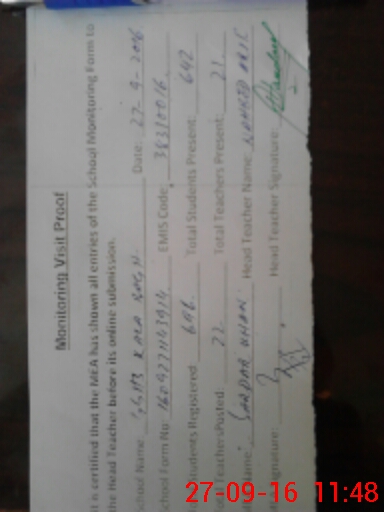 | Name: NA**** AR**** Designation: (School Headmaster's/Headmistress's) Sr HM Phone/Cell Number: 03**** |