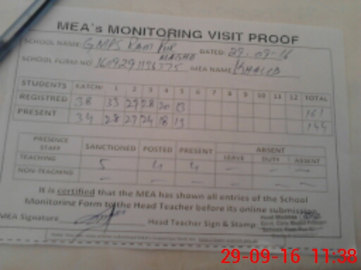 | Attendance Register | Head Teacher | MEA with School | Visit Proof |