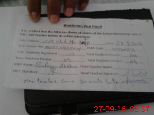| Attendance Register | Head Teacher | MEA with School | Visit Proof |