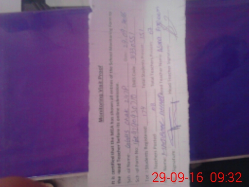 | Monitoring Date: 29-09-2016 | Start Time: 29-09-2016 08:56 AM | End Time: 29-09-2016 09:33 AM | Name of MEA: Ma**** Ah**** -RY**** | |