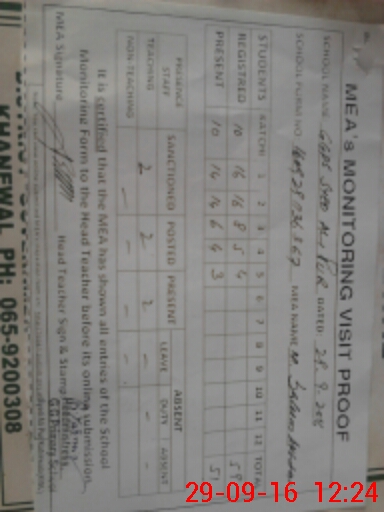 | Attendance Register | Head Teacher | MEA with School | Visit Proof |
