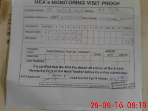 | Attendance Register | Head Teacher | MEA with School | Visit Proof |
