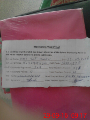 | Attendance Register | Head Teacher | MEA with School | Visit Proof |