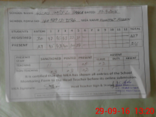 | Attendance Register | Head Teacher | MEA with School | Visit Proof |