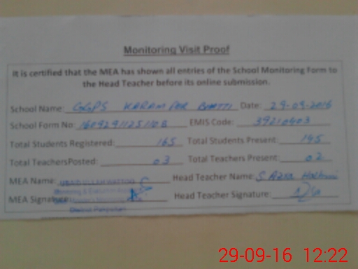 | Certified that this School was Inspected by the Undersigned MEA/DMO Today and the Information Stated Above is as Per Record. | |||||