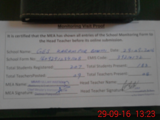 | EMIS Code: 39210172 | Name of School: GES KARAM PUR PO PAKPATTAN | |||