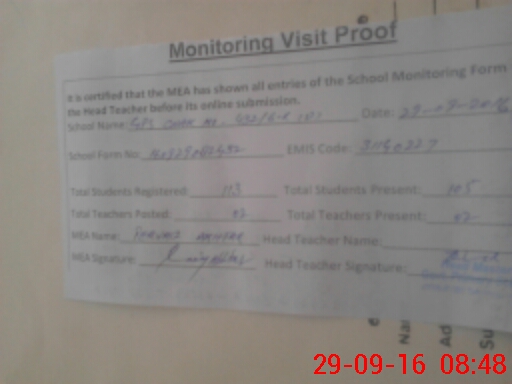 | Attendance Register | Head Teacher | MEA with School | Visit Proof |
