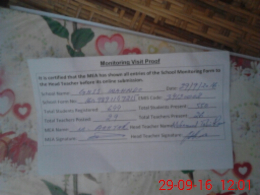 | Certified that this School was Inspected by the Undersigned MEA/DMO Today and the Information Stated Above is as Per Record. | |||||