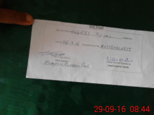 | Name: Re**** Kh**** Designation: (School Headmaster's/Headmistress's) Incharge Phone/Cell Number: 03**** |