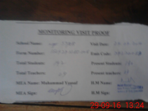 | Certified that this School was Inspected by the Undersigned MEA/DMO Today and the Information Stated Above is as Per Record. | |||||