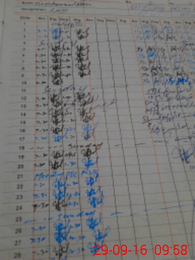 | Monitoring Date: 29-09-2016 | Start Time: 29-09-2016 09:30 AM | End Time: 29-09-2016 09:59 AM | Name of MEA: Kh**** Ta**** | |
