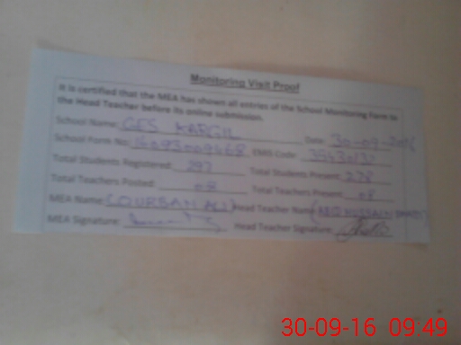 | Attendance Register | Head Teacher | MEA with School | Visit Proof |