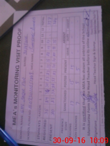 | Attendance Register | Head Teacher | MEA with School | Visit Proof |