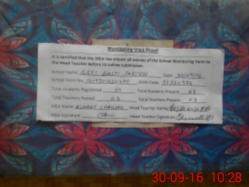 | Certified that this School was Inspected by the Undersigned MEA/DMO Today and the Information Stated Above is as Per Record. | |||||