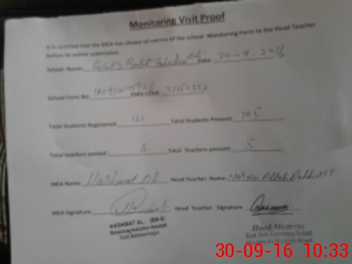 | Attendance Register | Head Teacher | MEA with School | Visit Proof |
