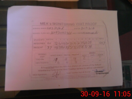 | Attendance Register | Head Teacher | MEA with School | Visit Proof |