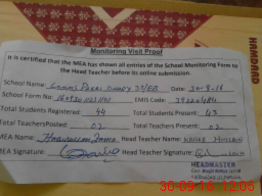 | Certified that this School was Inspected by the Undersigned MEA/DMO Today and the Information Stated Above is as Per Record. | |||||