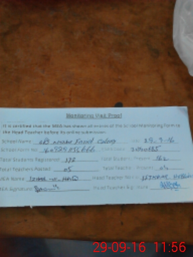| EMIS Code: 31340685 | Name of School: GPS MAZHAR FARID COLONY | |||