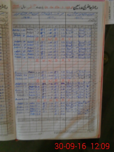 | CNIC | Full Name | Designation | R/C | Absence During Last Calender Month |