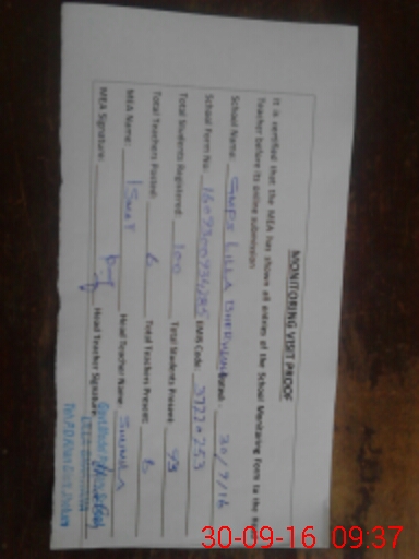 | Attendance Register | Head Teacher | MEA with School | Visit Proof |