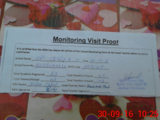 | Attendance Register | Head Teacher | MEA with School | Visit Proof |