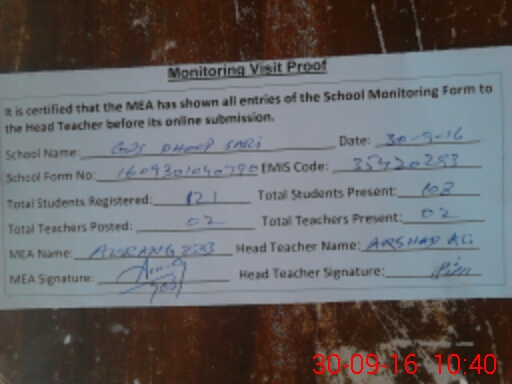 | EMIS Code: 35420293 | Name of School: GPS DHOOP SARI NARANG | |||
