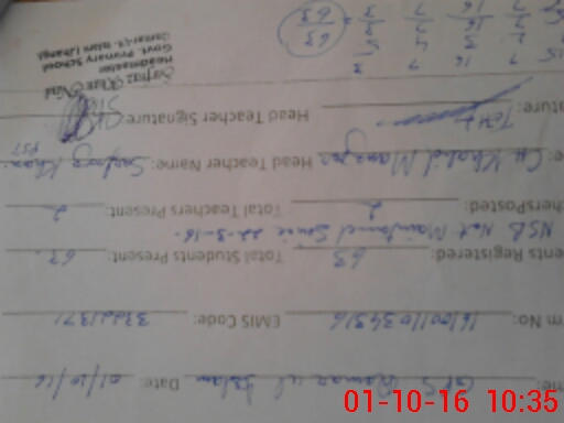 | Name: MU**** NA**** Designation: (School Headmaster's/Headmistress's) PST Phone/Cell Number: 03**** |
